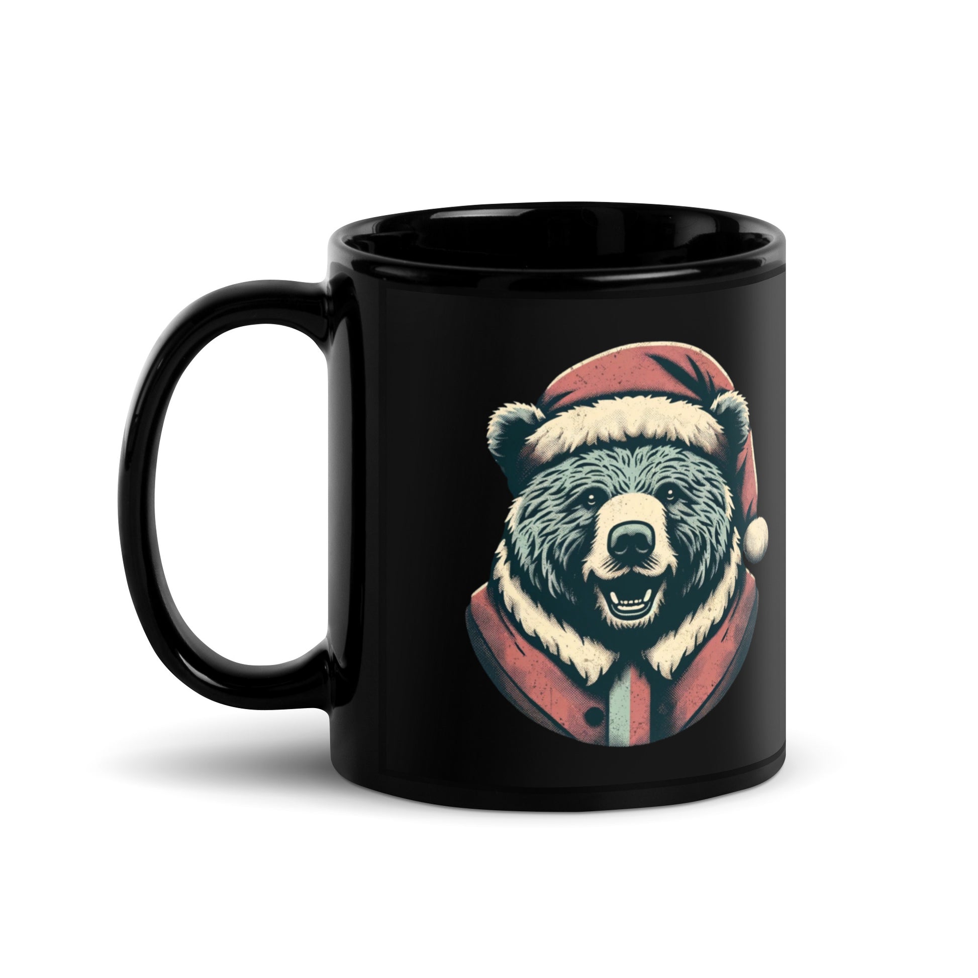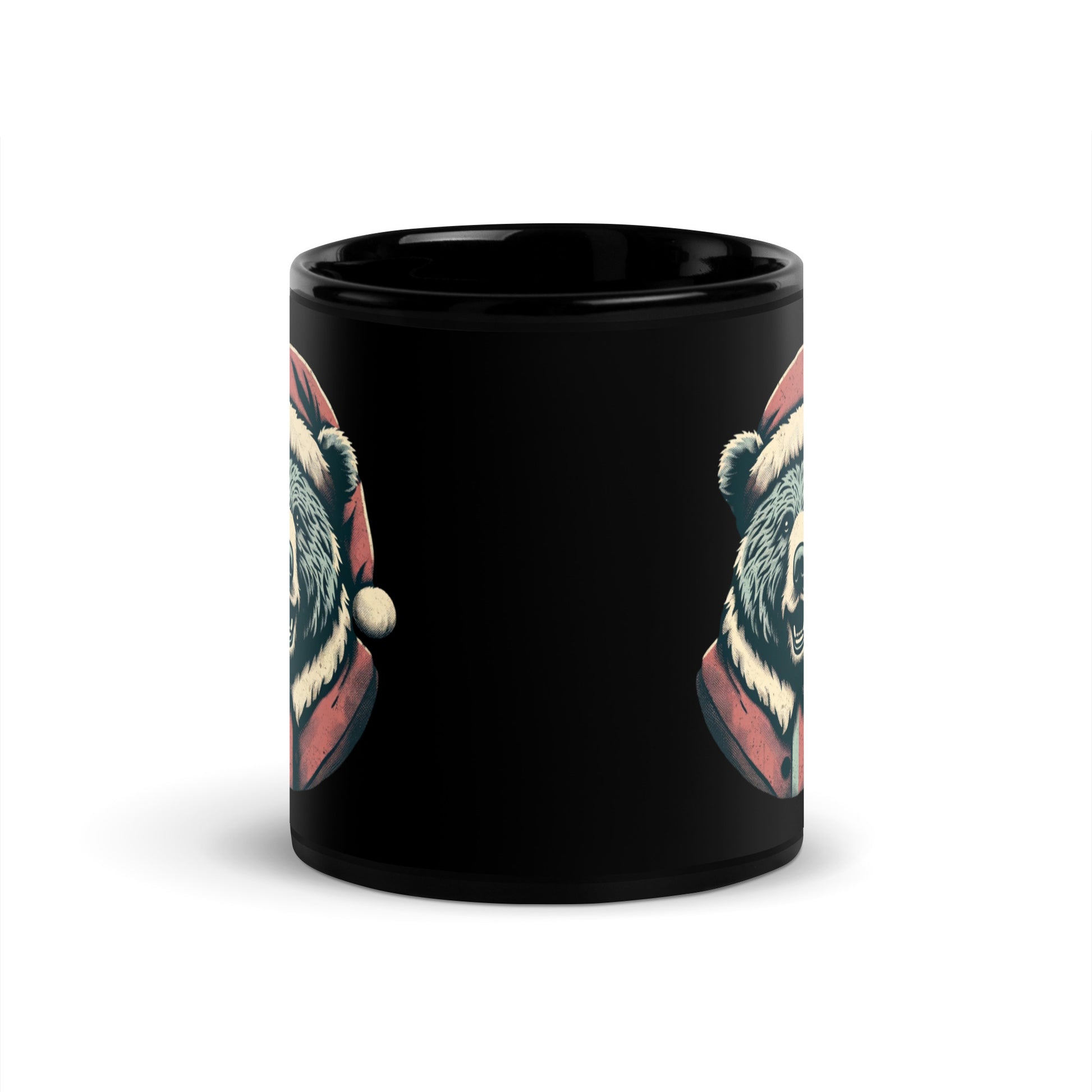 Bear-ly Merry: Rustic Christmas Retreat with Santa's Fuzziest Helpers Black Glossy Mug