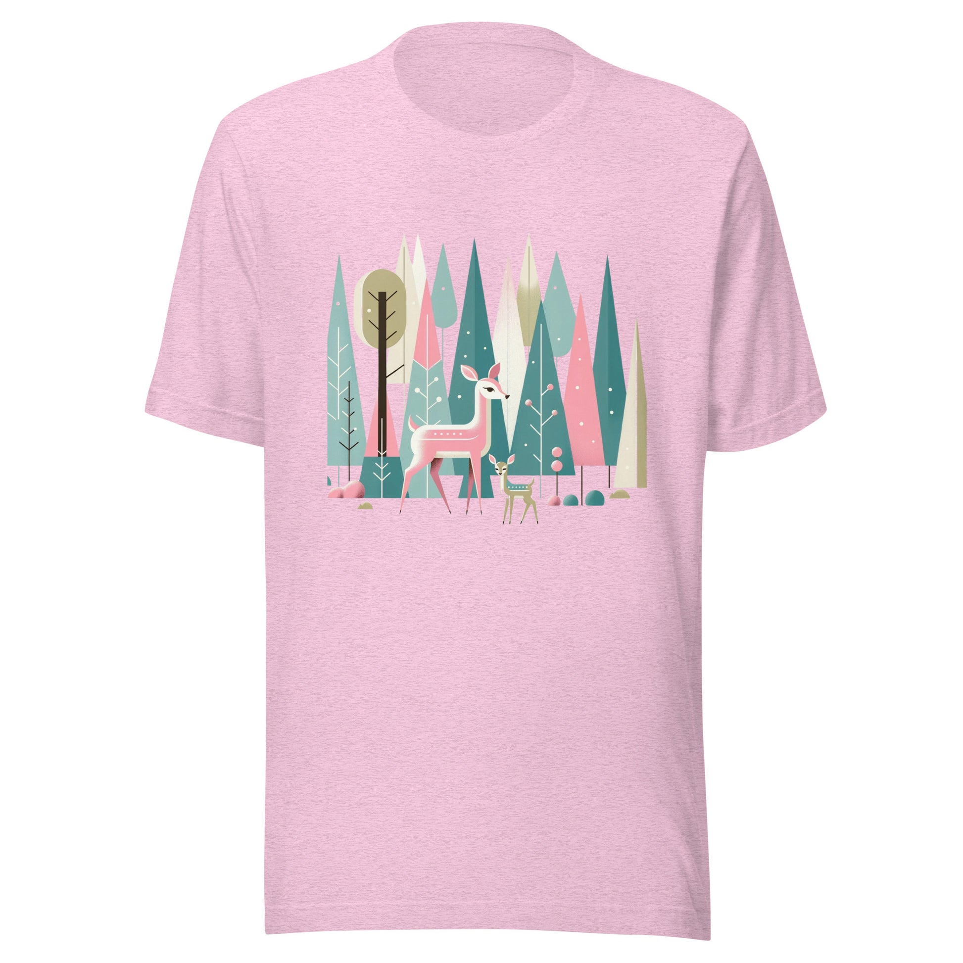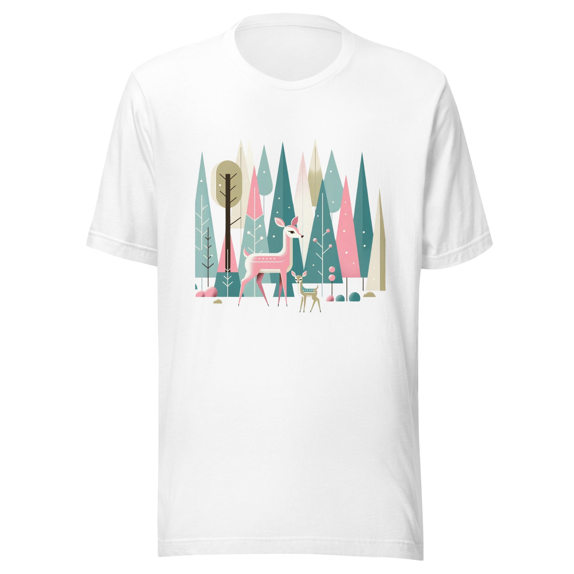 Deer & Fawn Retro Forest Nature MCM Winter Scene Unisex t-shirt