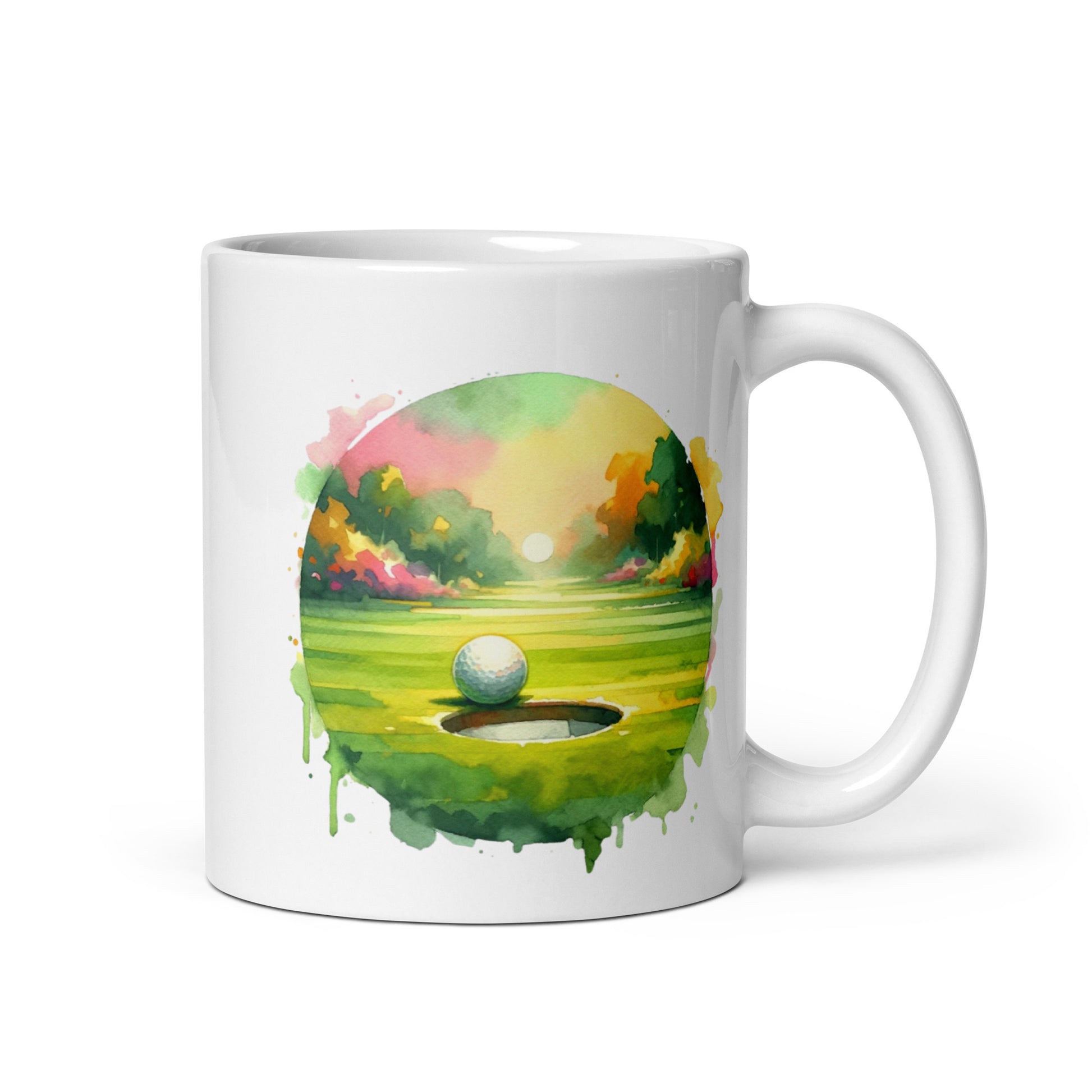 On the Brink - Final Putt Watercolors Golf Scene White glossy mug