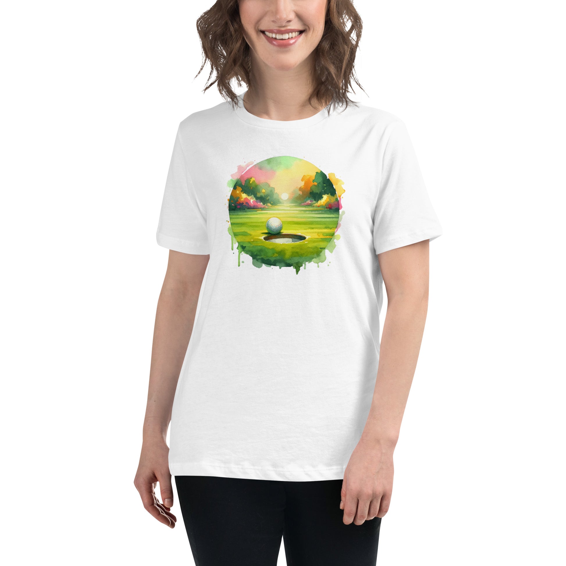 On the Brink - Final Putt Watercolors Golf Scene Women's Relaxed T-Shirt
